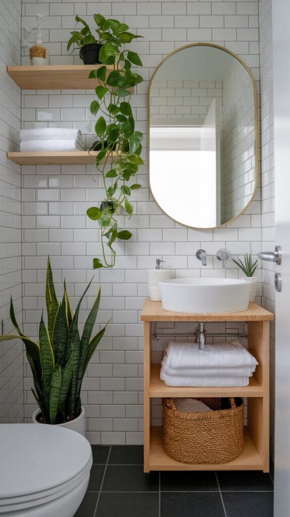 Adding greenery is one of the simplest ways to freshen up a bathroom. Low-light plants like pothos, ferns, or snake plants thrive in humid spaces and bring life to your décor.