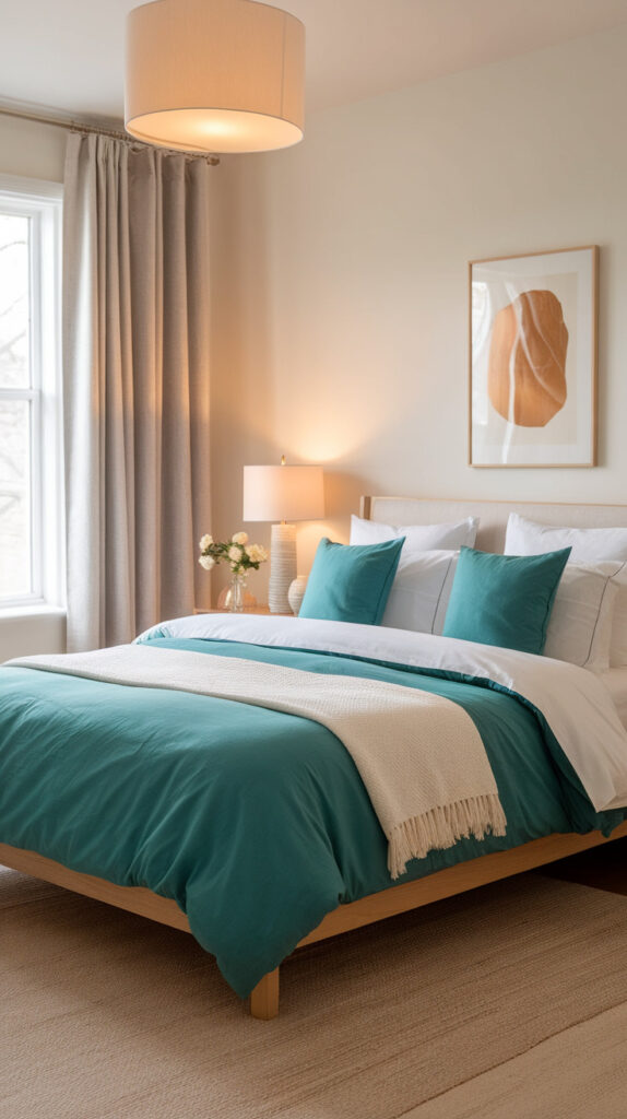 If you’re unsure, start with teal in textiles before committing to paint. Bedding, pillows, and art allow you to experiment without long-term pressure. Once you see how the color behaves in your space, bigger changes feel less risky.