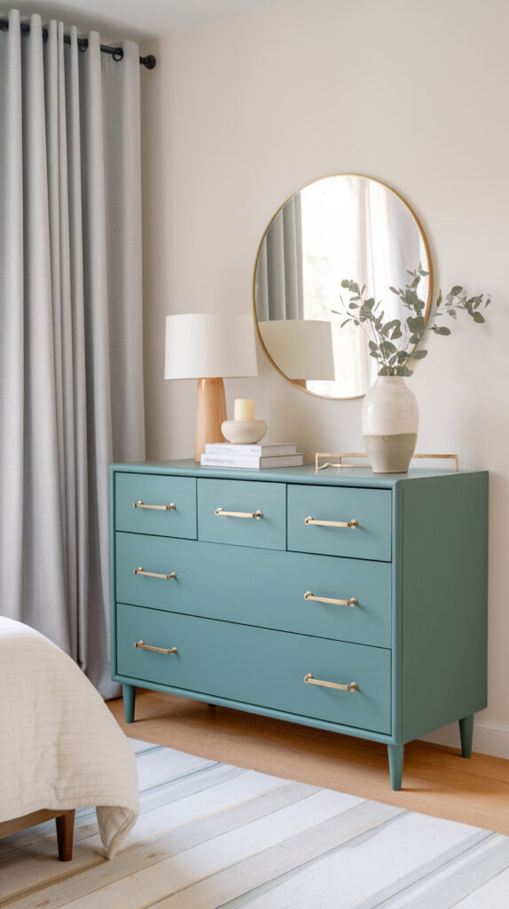 Teal works beautifully on dressers because it looks rich and modern while still feeling cozy. Add the right hardware, and suddenly it looks like something from a boutique furniture store.